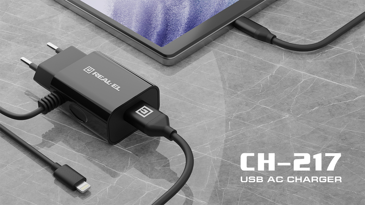 Сетевое зарядное USB-устройство REAL-EL CH-217 предназначено для зарядки аккумуляторов портативных устройств (мобильных телефонов, смартфонов, MP3-плееров, КПК, планшетных компьютеров и других цифровых устройств), а также питания портативной акустики от бытовой электросети.