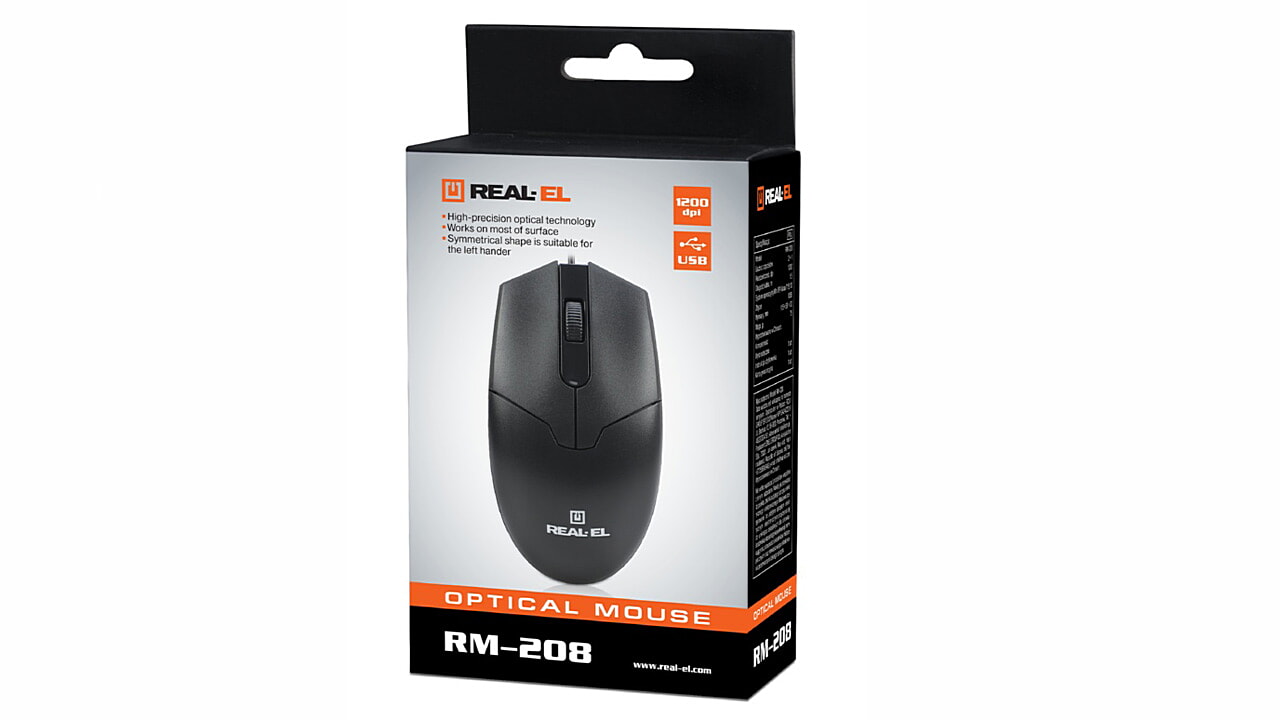 Проводная мышь REAL-EL RM-208 – идеальное решение для работы и учебы. Высокоточная оптическая технология позволяет манипулятору RM-208 работать практически на любой поверхности. Особенности: симметричная форма, 2 + 1 клавиши, колесо прокрутки, удобна для правшей и левшей.