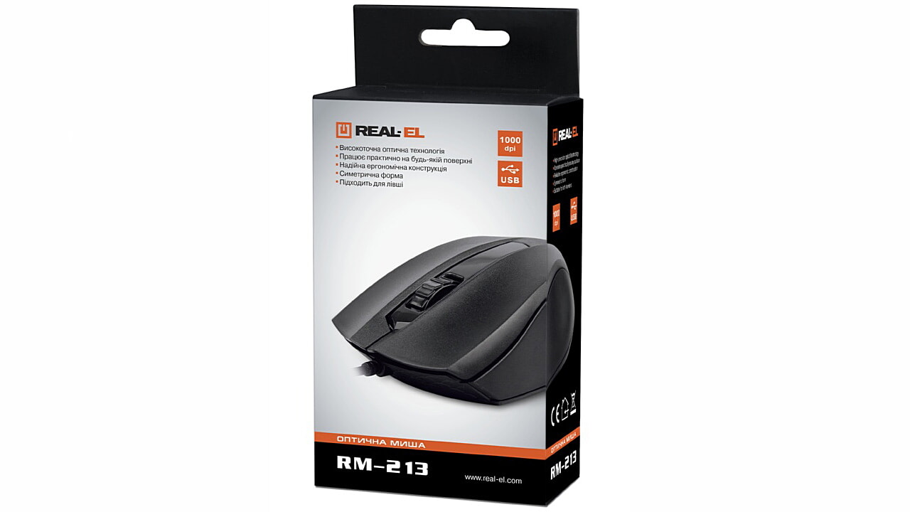 Высокоточная оптическая технология позволяет манипулятору REAL-EL RM-213 работать практически на любой поверхности. Особенности: 2 + 1 клавиши, надежная эргономичная конструкция, колесо прокрутки, интерфейс USB, подходит для левши.