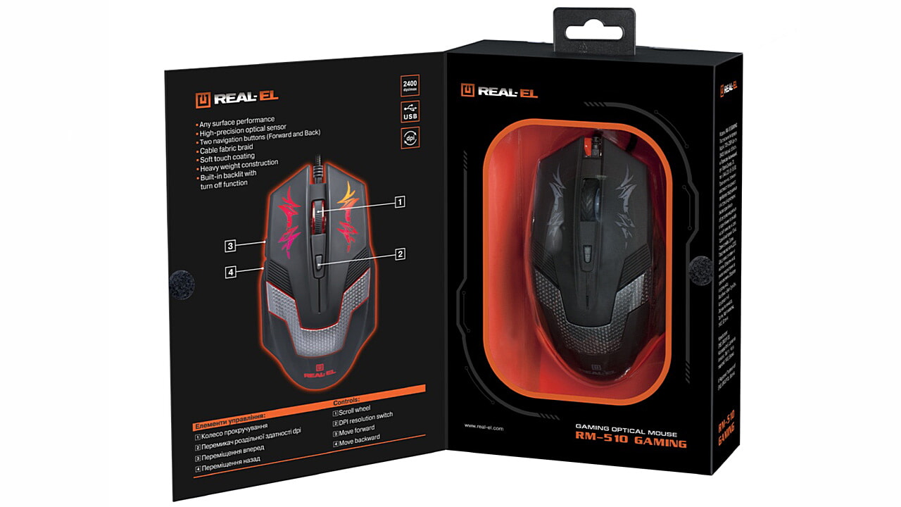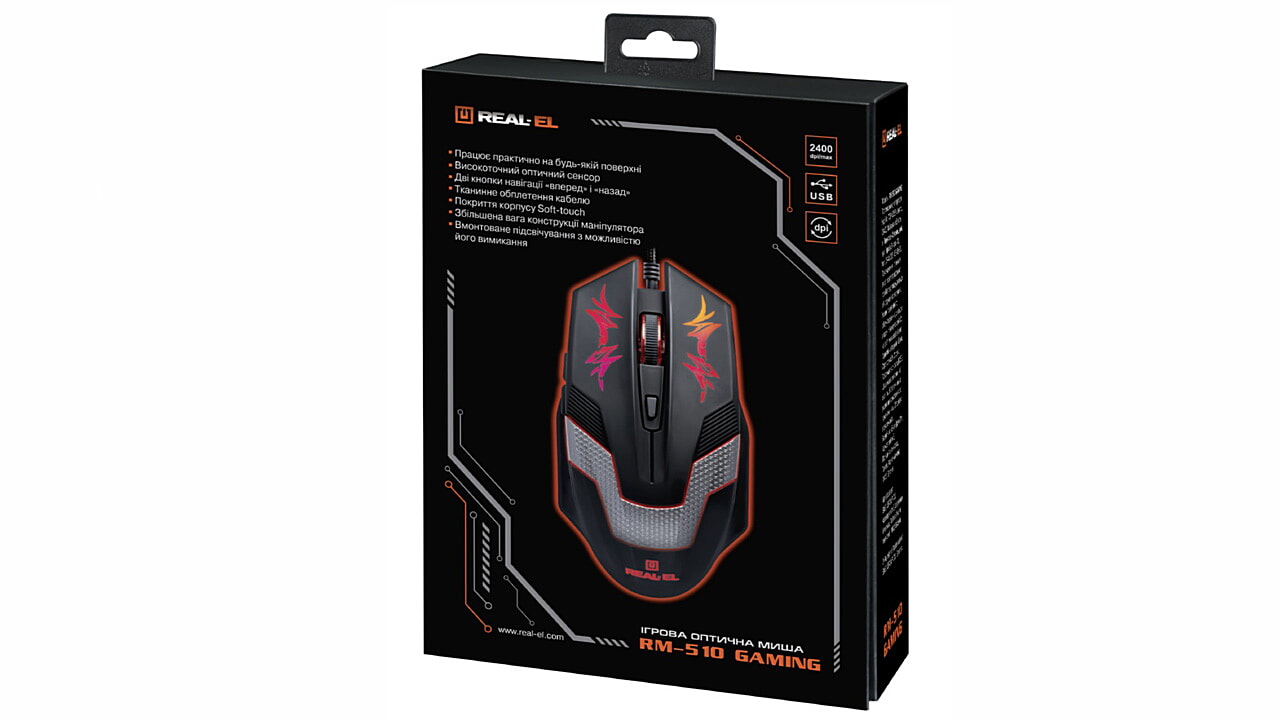 Высокоточная оптическая технология позволяет игровой компьютерной мыши REAL-EL RM-510 Gaming работать практически на любой поверхности. Особенности: высокая скорость работы, 5 + 1 клавиши, колесо прокрутки, 2 кнопки навигации «вперед» и «назад», переключатель разрешения DPI, покрытие корпуса Soft Touch, встроенная подсветка с возможностью ее отключения.
