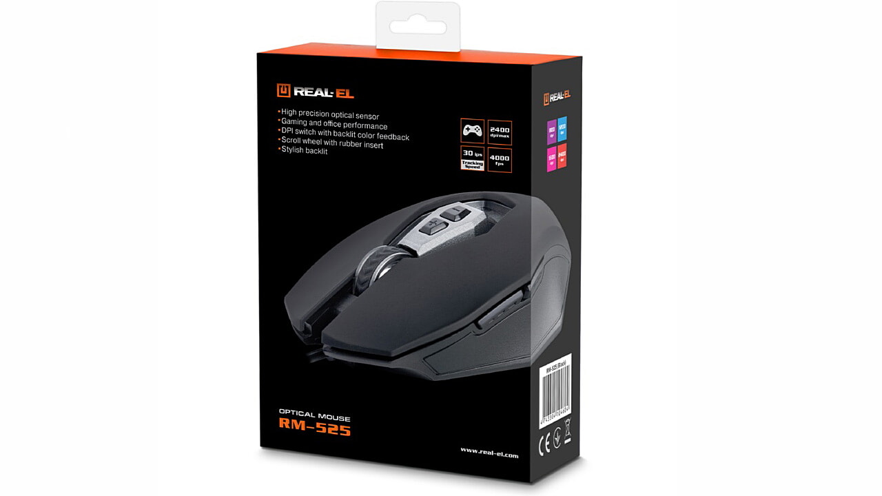 Высокоточная оптическая технология позволяет игровой компьютерной мыши REAL-EL RM-525 работать практически на любой поверхности. Особенности: высокая скорость работы, 6 + 1 клавиши, колесо прокрутки, 2 кнопки навигации «вперед» и «назад», переключатель разрешения DPI, покрытие корпуса Soft Touch, встроенная подсветка.