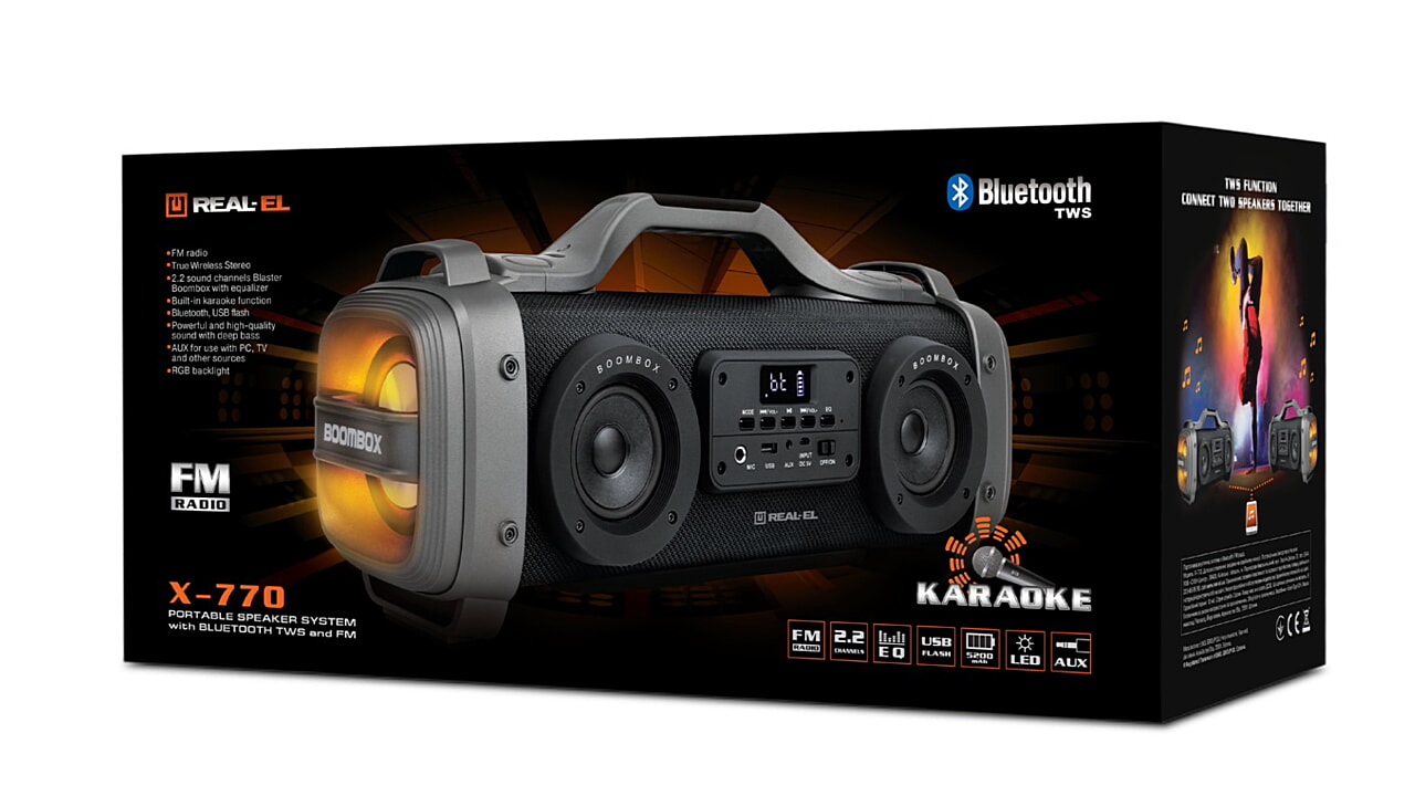 • Портативная колонка бум-бокс - Обзор REAL-EL X-770