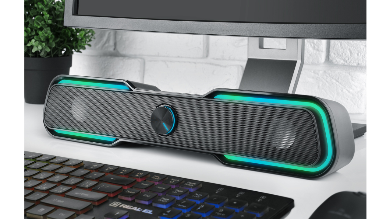 Саундбар REAL-EL S-180 это качественная звуковая панель с RGB подсветкой для прослушивания музыки и озвучивания аудио, видео контента. Модель S-180 это компактная технологическая и современная альтернатива классическим колонкам, которая обычно размещается под монитором.