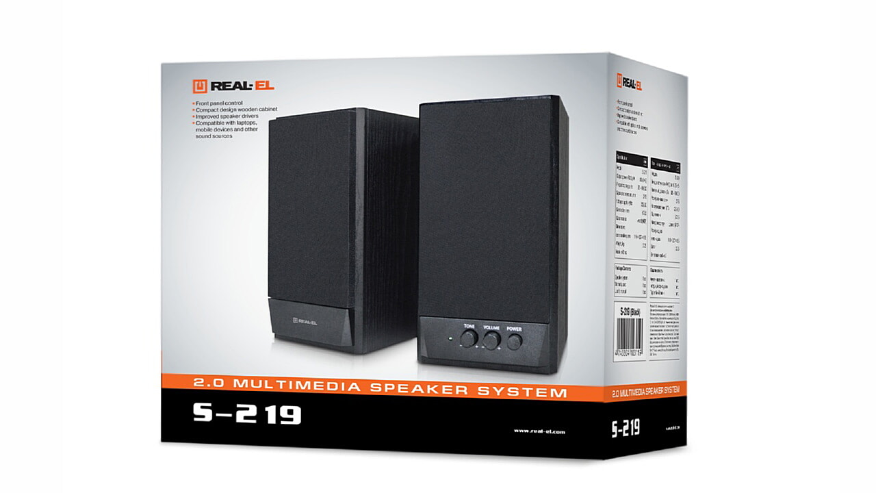 Акустическая система (АС) REAL-EL S-219 предназначена для воспроизведения музыки и озвучивания игр, фильмов и проч. АС может быть подключена практически к любым источникам аудиосигнала (CD/DVD-проигрывателям, телевизору, ПК и т. п.) без использования дополнительного усилителя мощности.