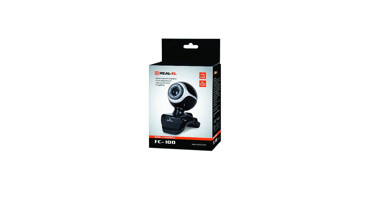 Особенностями веб-камеры REAL-EL FC-100 являются встроенный микрофон, настраиваемое фокусное расстояние, Plug&Play, шарнир для поворота камеры под любым углом, клипса для установки камеры на столе, ноутбуке, LCD-мониторе.