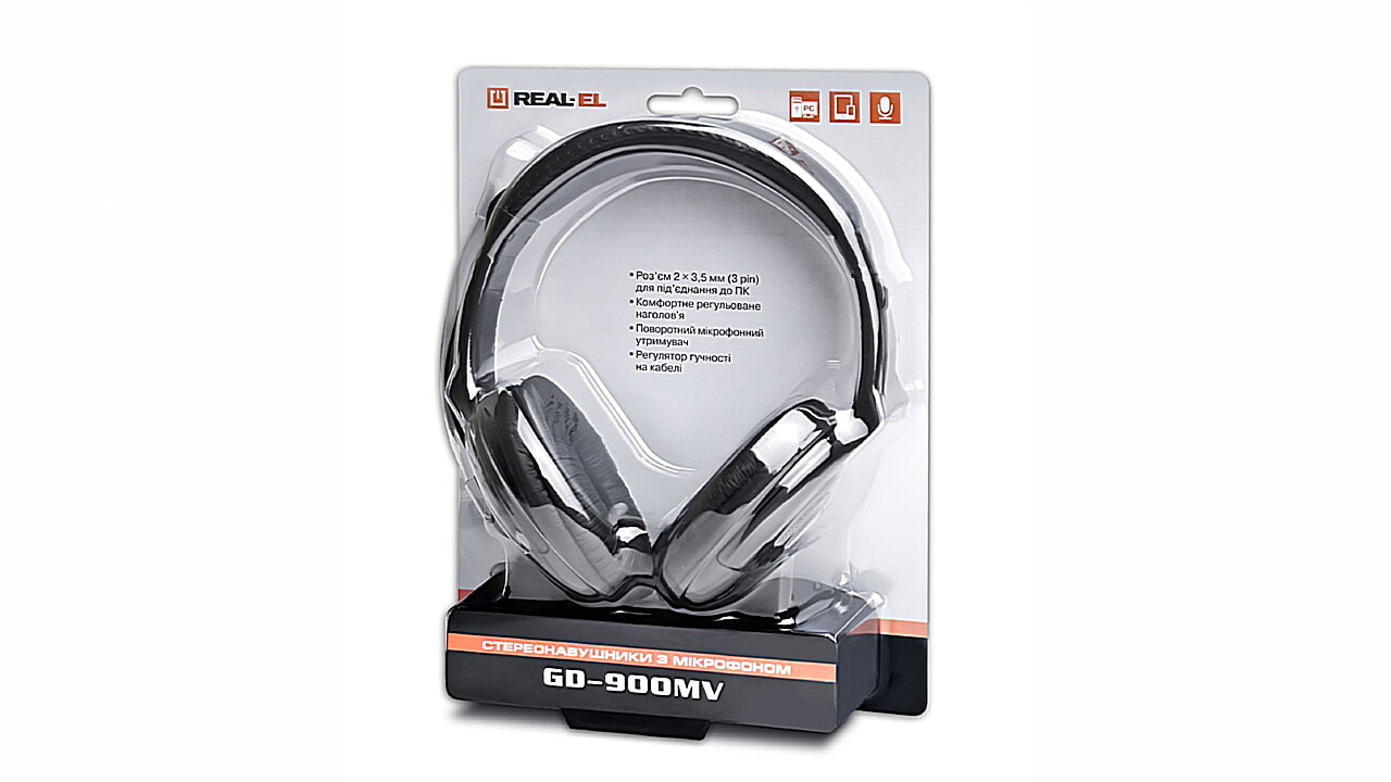 Стереонаушники с микрофоном REAL-EL GD-900MV предназначены для работы со звуковыми картами ПК и другими совместимыми с ними системами. Особенности: разъем 3,5 мм (3 pin) для подключения к ПК, регулятор громкости на кабеле, комфортное регулируемое оголовье, поворотный микрофонный держатель.