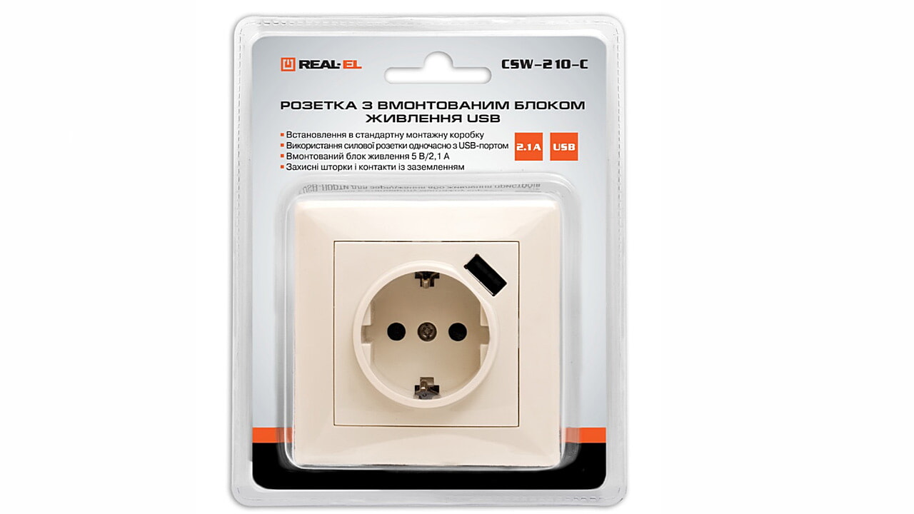 Розетка со встроенным блоком питания USB REAL-EL CSW-210-C предназначена для подключения электроприборов к электросети и для использованию её одновременно с USB-портом.