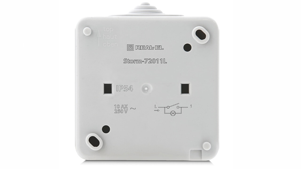 Выключатель одинарный с индикатором Storm-72011L для внешней установки предназначен для коммутации электрических цепей. Степень защиты от пыли и попадания влаги – IP54.