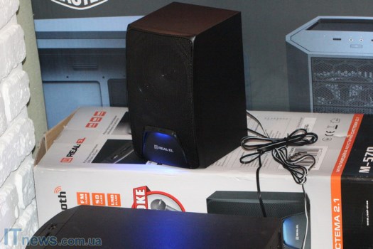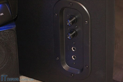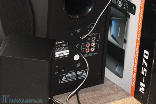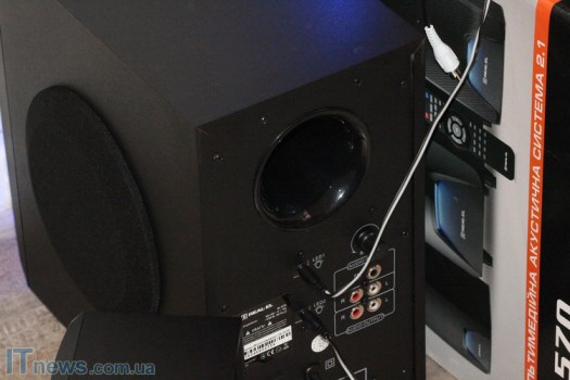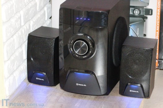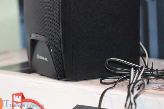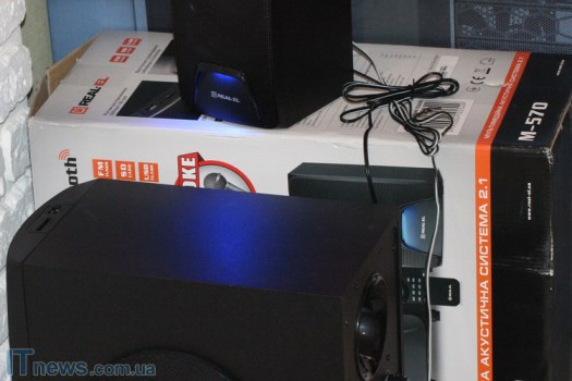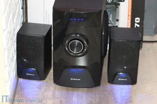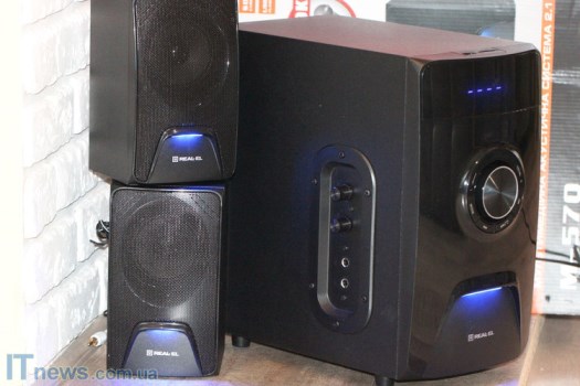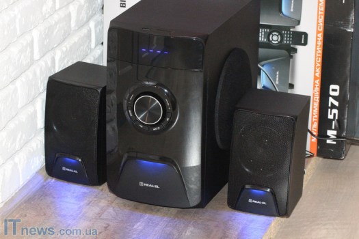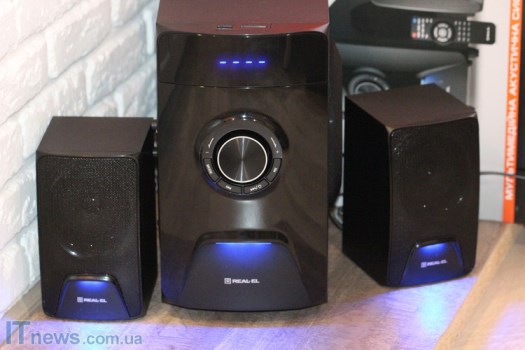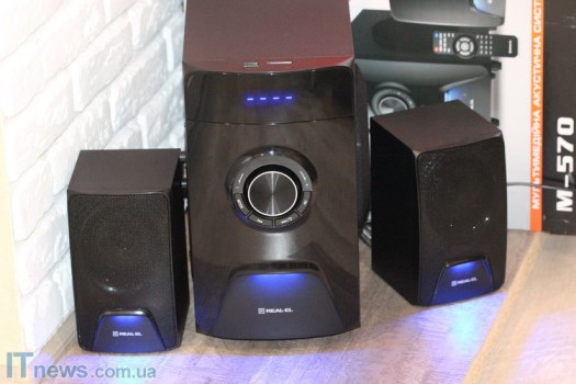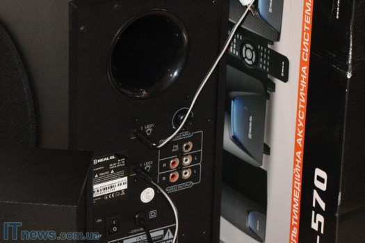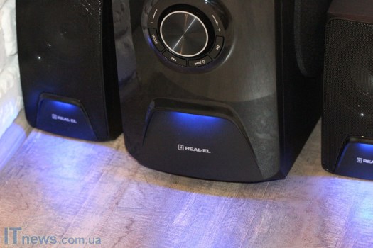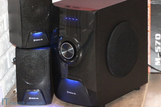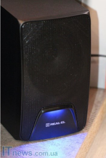 Интересная особенность REAL-EL M-570 – LED-подсветка, причем как на сабвуфере, так и на динамиках, что пока еще встретишь не очень часто. Такая подсветка классно смотрится на фоне темной панели, стильно дополняя ее. Поскольку подсветка не особенно яркая, она не отвлекает внимание, а в темном помещении смотрится весьма эффектно.