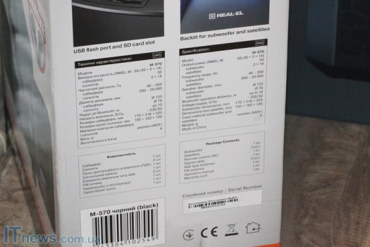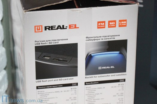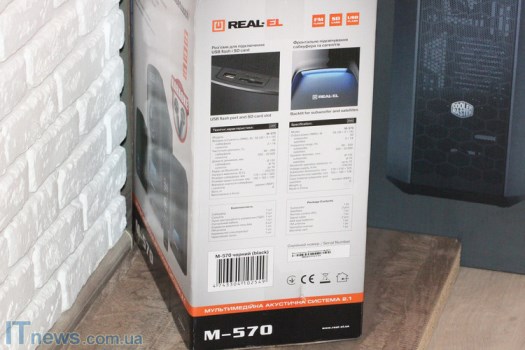 И, наконец, спереди и сзади на стенках в виде сносок и миниатюр вынесены сведения о ключевых особенностях REAL-EL M-570.
