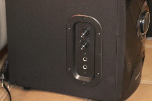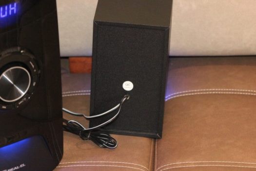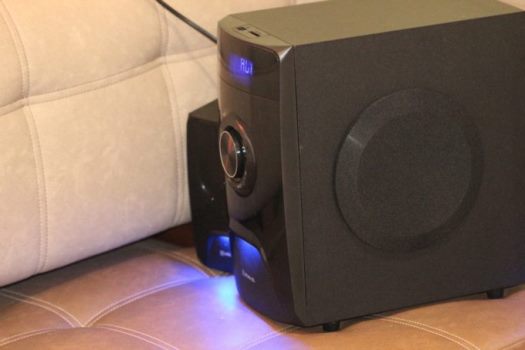 Если ранее подсветка преимущественно встречалась лишь на «сабе», то в данной модели ее вынесли и на колонки. То, что она не очень яркая назвать минусом не получится, скорее даже наоборот – именно так классно дополняется дизайн. Кроме того, такая подсветка чудесно смотрится в темноте.