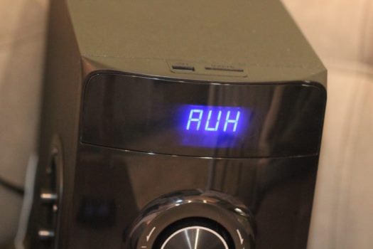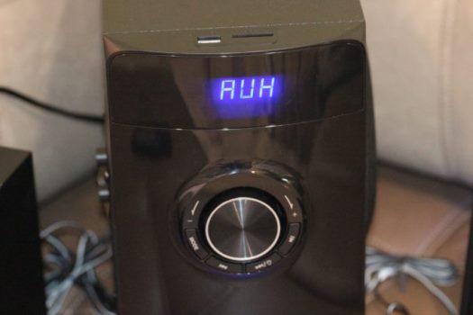 Спереди на сабвуфере расположен дисплей. Кроме него, здесь же значительный по своим размерам вал регулировки громкости, а еще четыре кнопки. В целом, какая функциональность, на какую клавишу возложена, угадать несложно благодаря соответствующим пиктограммам на каждой. А вот если кому непонятно предназначение кнопки MODE, добавлю, что здесь речь о выборе источника воспроизведения. Посредством этой же кнопки можно настраивать также беспроводное подключение к внешнему источнику звука.