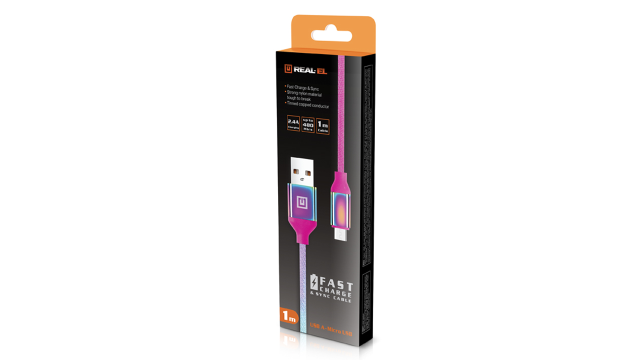 Кабель REAL-EL Premium USB A - Micro USB Rainbow призначений для підключення цифрових пристроїв для заряджання та передачі інформації.