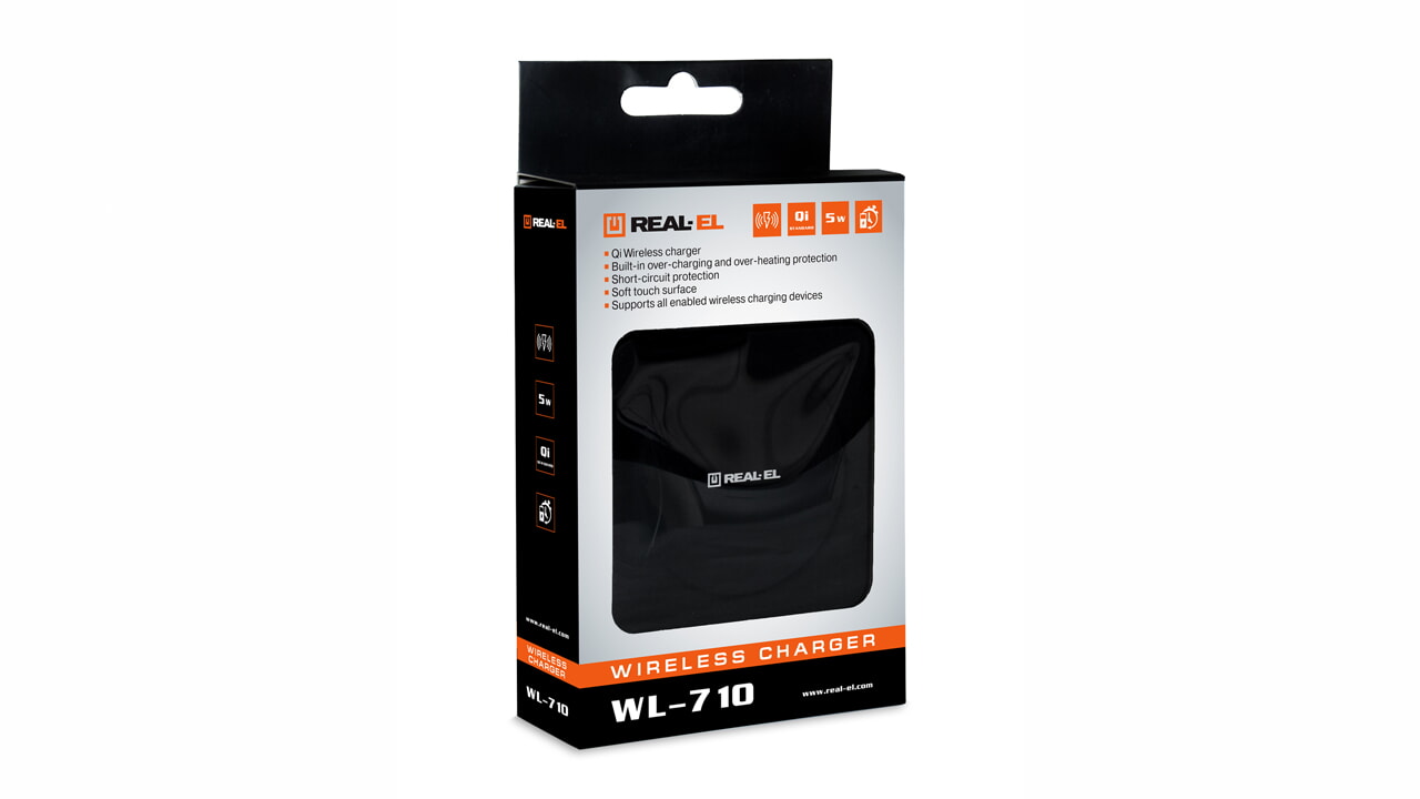 Бездротовий зарядний пристрій REAL-EL WL-710 призначено для живлення та заряджання акумуляторів пристроїв, що підтримують технологію бездротового заряджання.