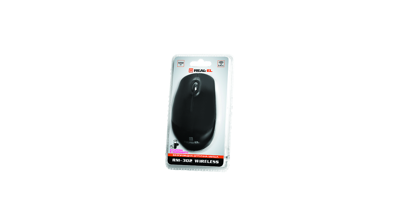 Енергоефективна безпровідна технологія дає змогу маніпулятору REAL-EL RM-302 Wireless працювати практично на будь-якій поверхні. Особливості: 2 + 1 клавіші, cтильний ергономічний дизайн, колесо прокручування, роздільна здатність – 1000 dpi, інтерфейс USB, збільшений термін роботи від батарейок.