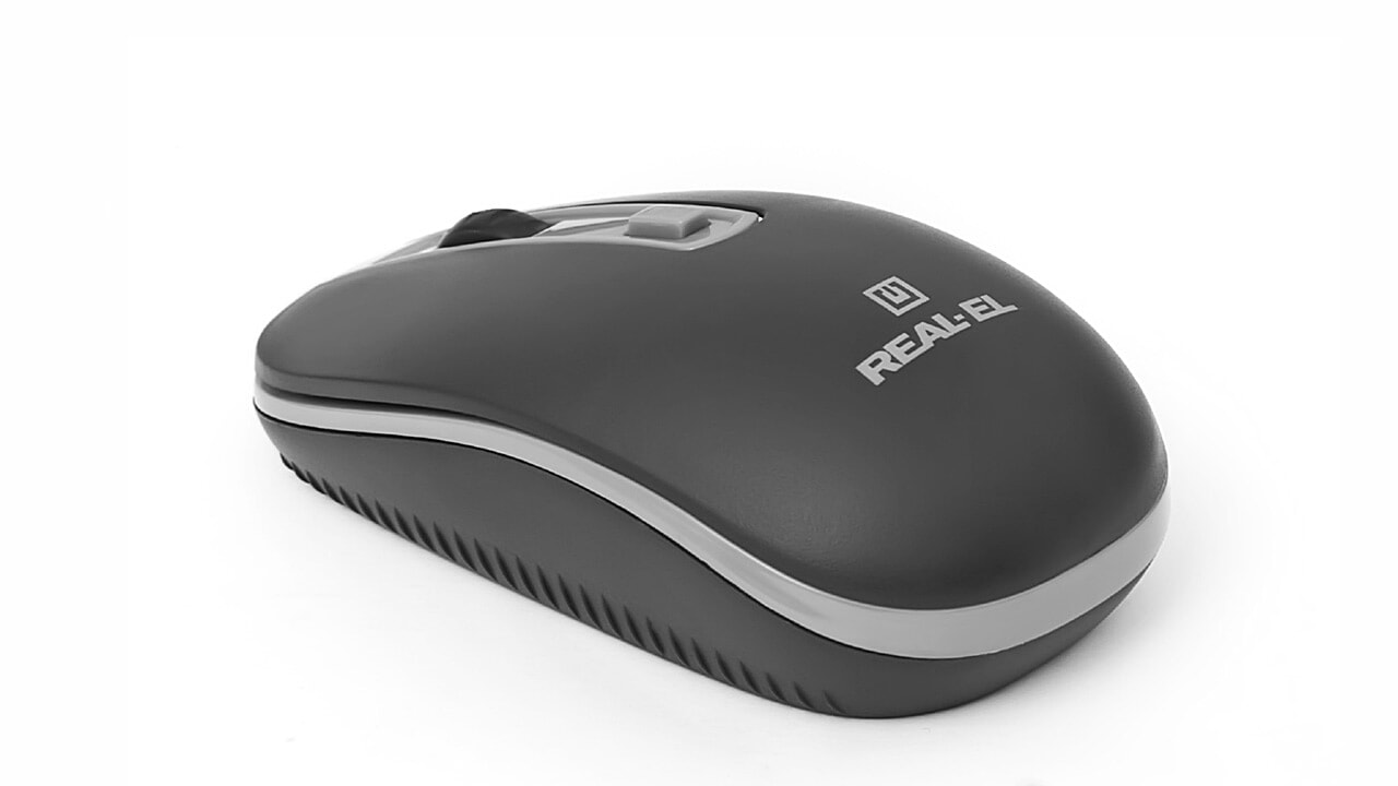 Безпровідна миша REAL-EL RM-303 Wireless має такі особливості: 3 + 1 клавіші, cтильний ергономічний дизайн, колесо прокручування, перемикач роздільної здатності, інтерфейс USB, працює практично на будь-якій поверхні, термін роботи від батарейки – до 1 року.