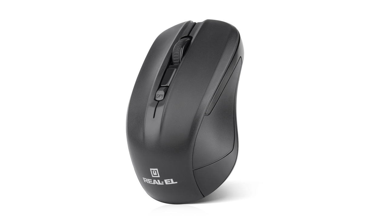 Енергоефективна безпровідна технологія дає змогу маніпулятору REAL-EL RM-307 Wireless працювати практично на будь-якій поверхні. Особливості: 5 + 1 клавіші, cтильний ергономічний дизайн, колесо прокручування, роздільна здатність – 1600 dpi, інтерфейс USB, збільшений термін роботи від батарейок.