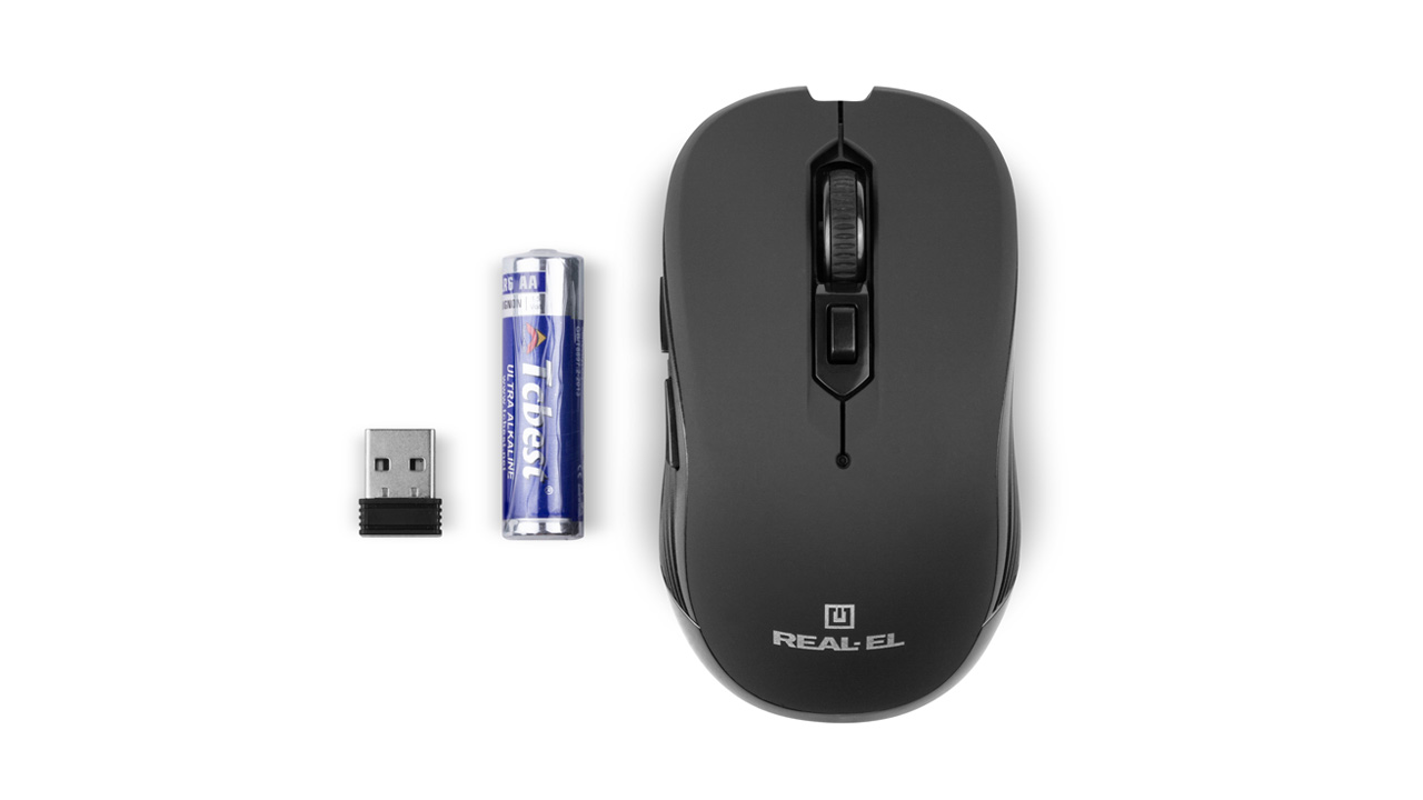 Енергоефективна безпровідна технологія дає змогу маніпулятору REAL-EL RM-330 Wireless працювати практично на будь-якій поверхні. Особливості: 5 + 1 клавіші, cтильний ергономічний дизайн, колесо прокручування, роздільна здатність – 1600 dpi, інтерфейс USB, збільшений термін роботи від батарейок.