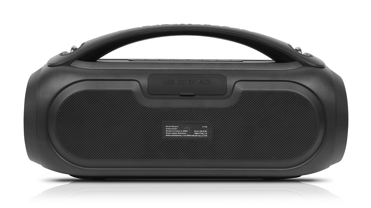 Спеціальні великі пасивні випромінювачі роблять баси REAL-EL X-745 виразними на насиченими. Широкий функціонал "бумбокса" дозволяє прослуховувати музику підключаючи мобільний пристрій, ПК, TV, ноутбук тощо, як через вхід AUX, так і по Bluetooth. USB-роз'єм дає можливість прослуховувати аудіофайли з flash носіїв.