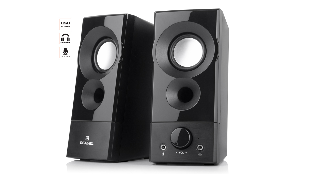 Мультимедійна акустична система REAL-EL S-90 це легке і доступне вирішення питання озвучування комп’ютера або ноутбука. Акустична система оснащена вмонтованими підсилювачем та всіма необхідними кабелями, завдяки чому може бути підключена практично до будь-яких джерел аудіосигналу. Живлення здійснюється від USB порту ПК, ноутбука, зарядного USB пристрою або активного USB хаба.