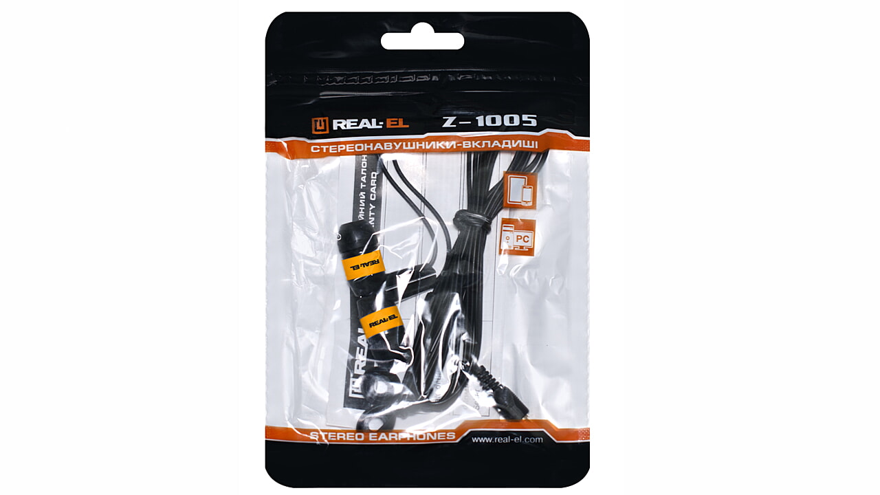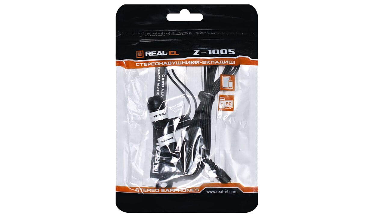 Навушники-вкладиші REAL-EL Z-1005 призначені для роботи із звуковими картами ПК та іншими сумісними з ними системами (портативними програвачами, комп’ютерними ігровими приставками тощо).