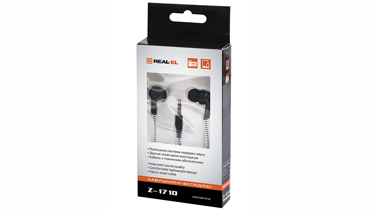Навушники-вкладиші REAL-EL Z-1710 призначені для роботи із звуковими картами ПК та іншими сумісними з ними системами (портативними програвачами, комп’ютерними ігровими приставками тощо).