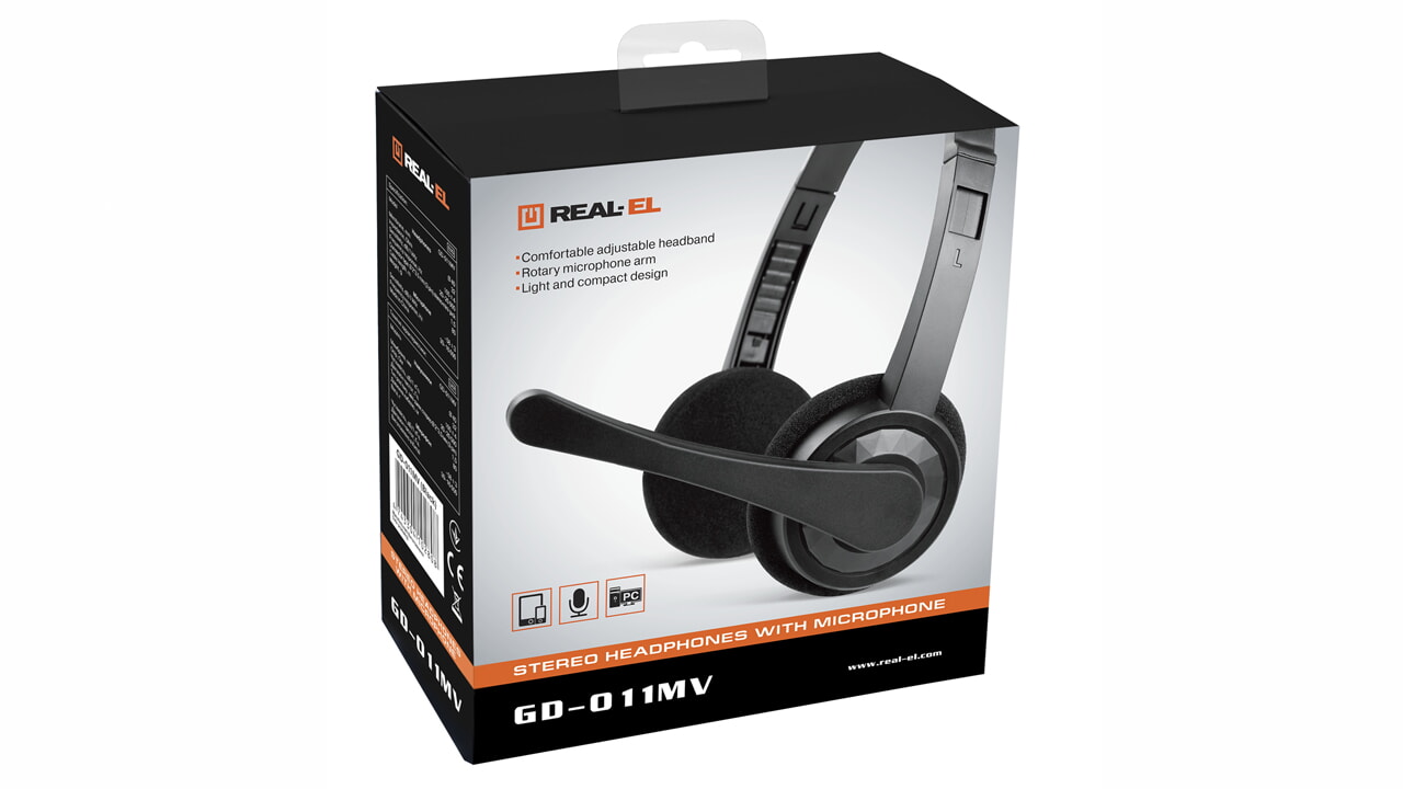 Стереонавушники з мікрофоном REAL-EL GD-011MV призначено для роботи зі звуковими картами ПК та іншими сумісними з ними системами. Їх також можна використовувати в інтернет-телефонії, при проведенні відеоконференцій, в мультимедійних додатках, в інтерактивних іграх, для розпізнавання мови і навчання іноземним мовам.