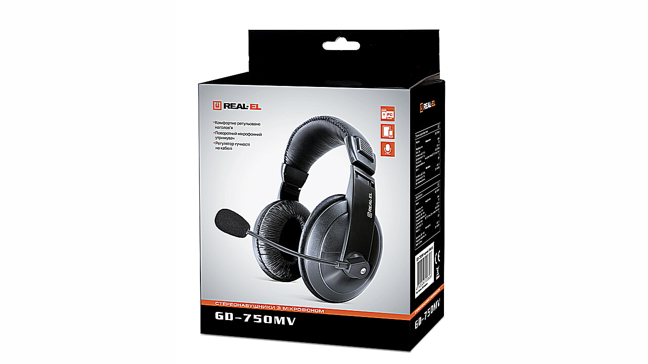 Стереонавушники з мікрофоном REAL-EL GD-750MV призначені для роботи із мобільними пристроями та іншими сумісними з ними системами. Їх також можна використовувати в інтернет-телефонії, під час проведення відеоконференцій, для розпізнавання мови і навчання іноземним мовам.
