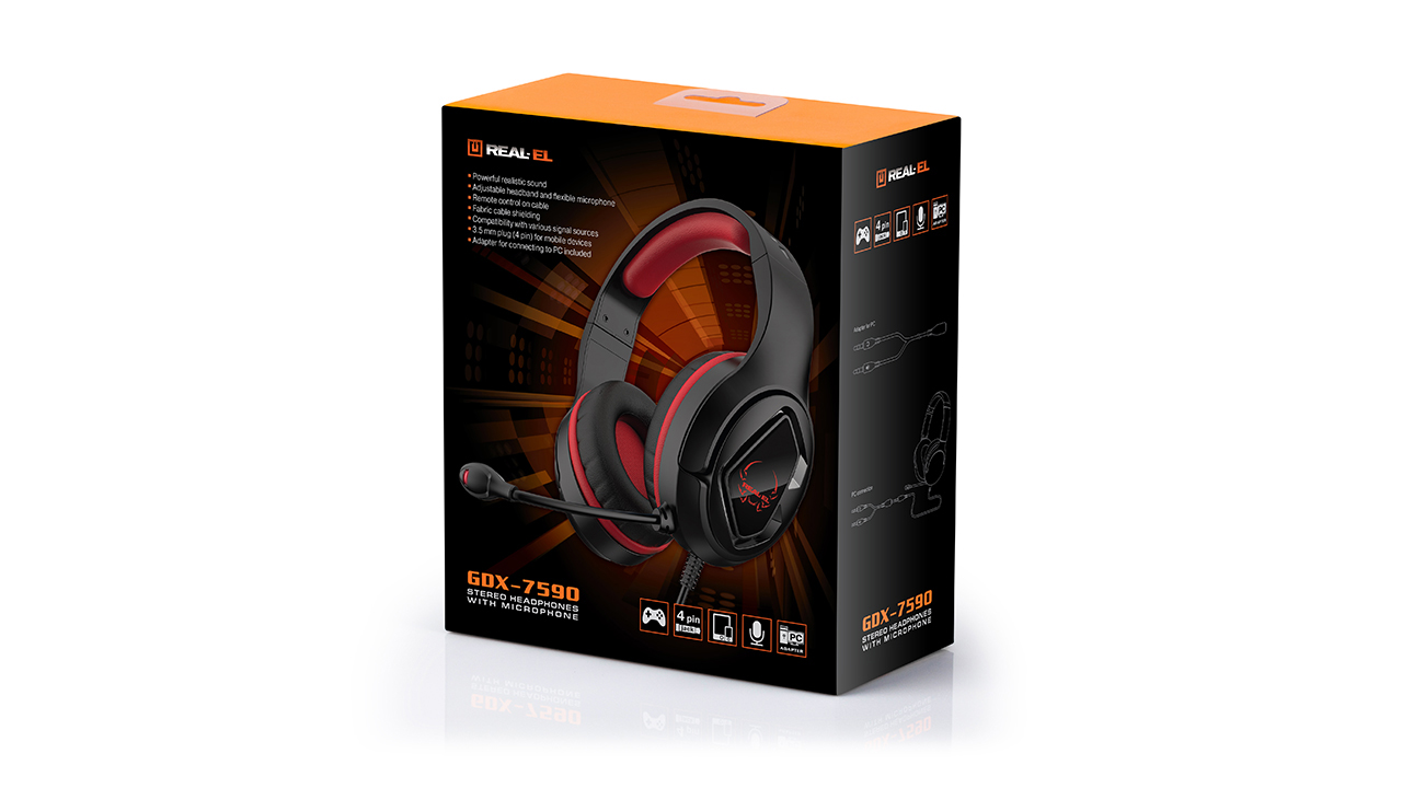 Стереонавушники з мікрофоном REAL-EL GDX-7590 забезпечують відтворення потужного реалістичного звуку, що створює відчуття повного занурення в музичну композицію чи гру. Сумісні з Media-програвачами і ПК.