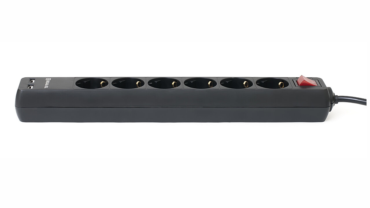 Мережевий фільтр-подовжувач REAL-EL RS-6 Protect USB з вмонтованим USB зарядним пристроєм призначено для підключення до електричної мережі електроприладів і забезпечення їхнього захисту від високовольтних імпульсів напруги і постійної фільтрації високочастотних перешкод.