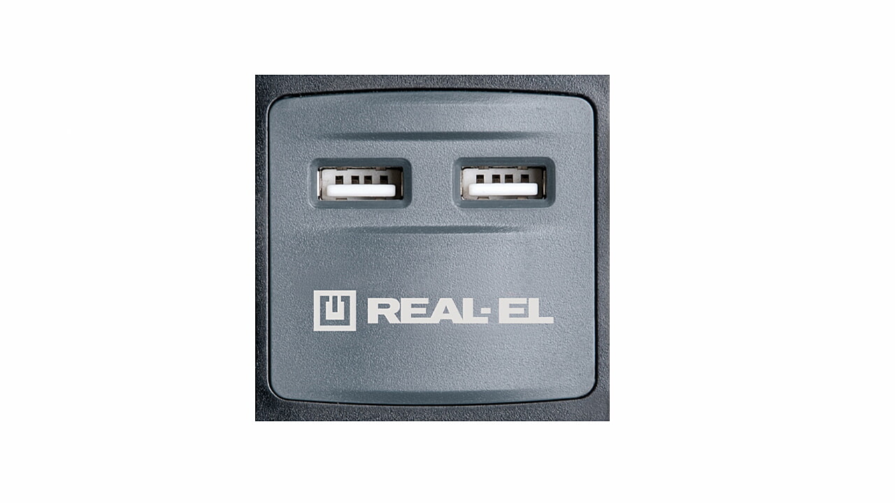Мережевий подовжувач REAL-EL RS-5 USB Charge з вмонтованим USB зарядним пристроєм призначено для підключення до електричної мережі електроприладів та одночасного заряджання двох пристроїв. Має 5 розеток із заземленням та захисними шторками та 2 USB-порти для заряджання.