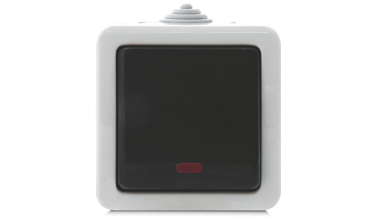 Вимикач одинарний з індикатором REAL-EL Storm-72011L для зовнішнього встановлення призначений для комутації електричних мереж. Ступінь захисту від пилу і потрапляння вологи – IP54.