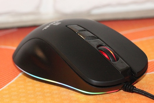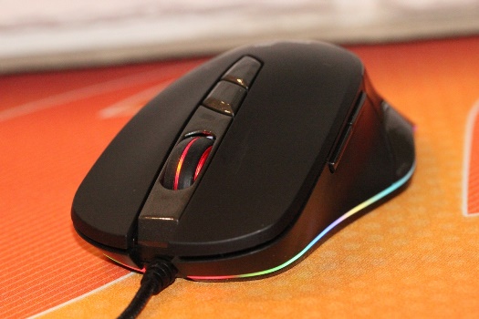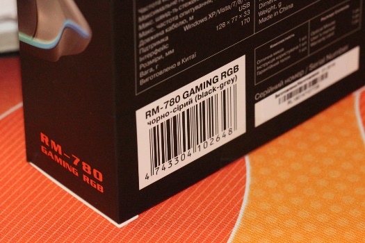 Реалізоване RGB-підсвічування у RM-780 Gaming виробник назвав контурним. Нічого незвичайного в такій назві немає, адже світло тут розсіюється лише через тонку вставку-контур молочного відтінку по периметру корпусу. Крім того, підсвічуванням наділене і коліщатко прокрутки.