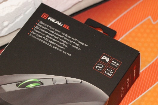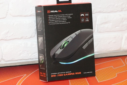 Мені сподобалось те, як виробник підійшов до декору коробки під REAL-EL RM-780 Gaming - виглядає дуже стильно. Оглянувши її, і не скажеш, що всередині ігровий маніпулятор, вартістю менше $ 20.