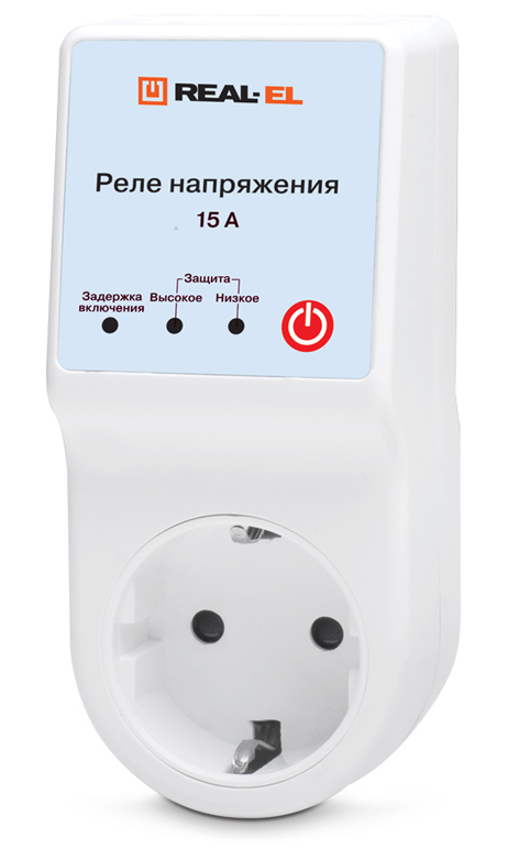 Таке реле напруги також встановлюється безпосередньо в розетку і використовується для захисту окремих споживачів або їх груп. Схема здійснює аналіз поточної живлячої напруги. Вимикання навантаження здійснюється електромагнітним реле. Порогиі і час затримки мають фіксовані значення і не регулюються.