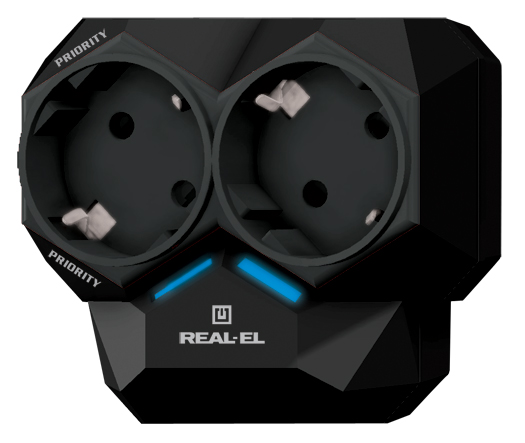 1. Пристрій, підключений до розетки «Priority», вимкнений або перебуває в режимі очікування (споживана потужність менше 60 Вт). На розетку без маркування подається напруга, і пристрій, підключений до неї, може працювати. Обидва індикатори активні (світяться).
